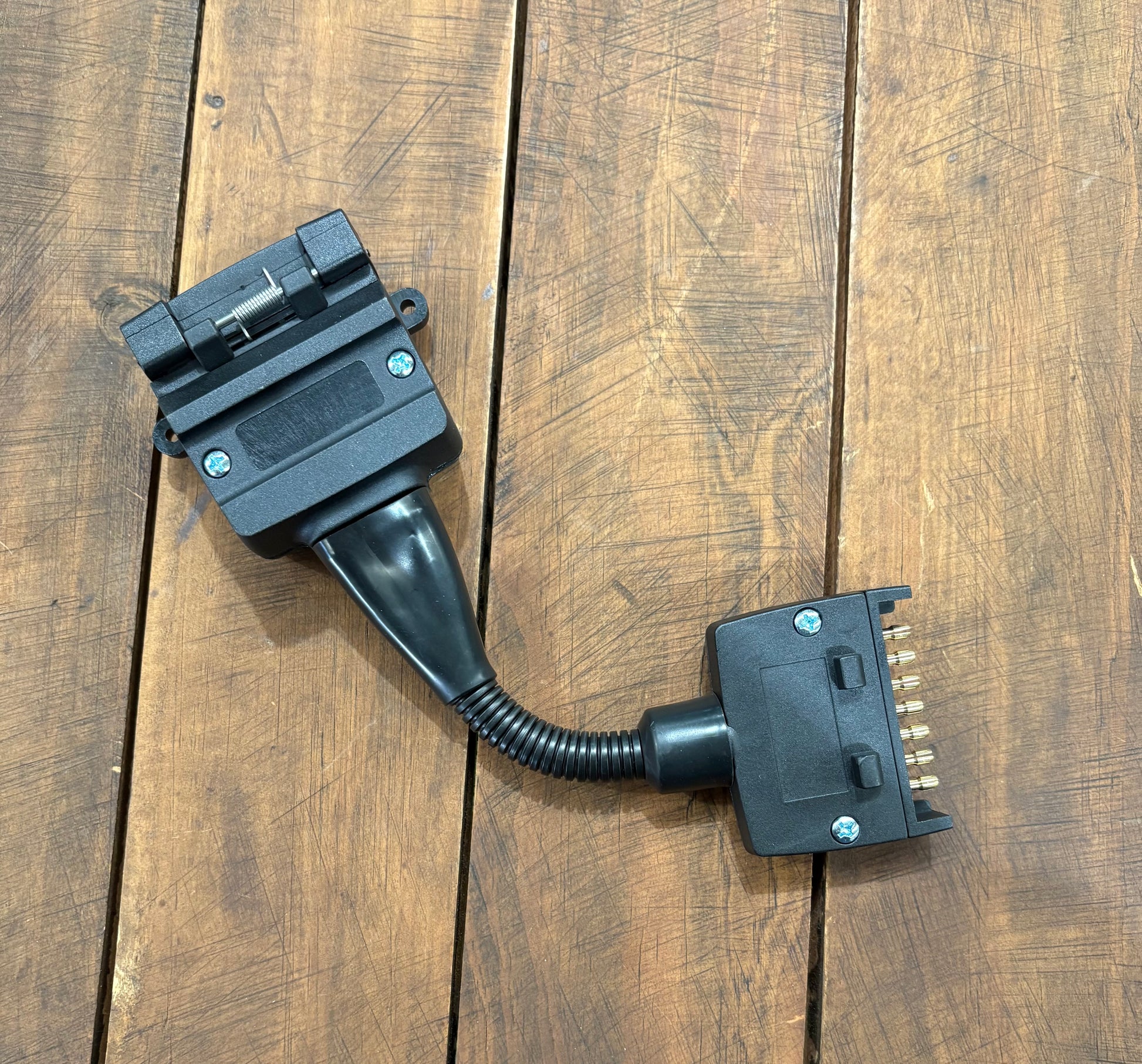 Converts a 7 Pin Male Plug to a 12 Pin Female Socket on your car, truck, or 4x4, to suit a 7 Pin Flat Plug on your trailer, caravan, or boat.