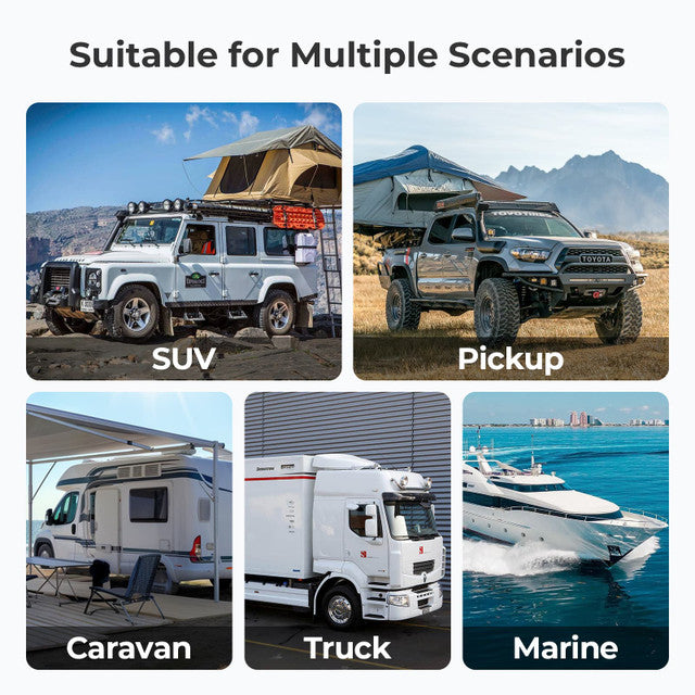 Ensure efficient power management with the Renogy IP67 50A DC-DC Charger. This waterproof charger combines alternator and solar inputs using MPPT technology for optimal charging. It supports AGM, Gel, and lithium batteries, making it versatile for various off-grid setups. With automatic mode adjustments and comprehensive safety features, it's ideal for caravans and outdoor adventures.