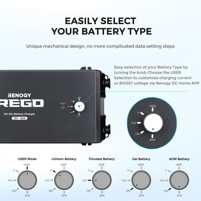 Renogy REGO 60A DC-DC Battery Charger - Lithium Compatible